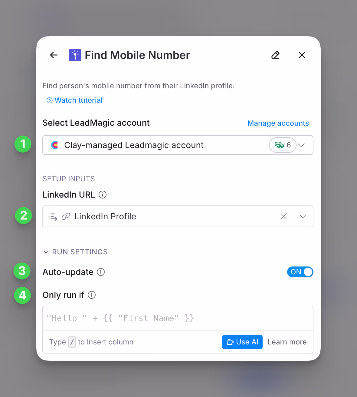 The Find Mobile Number integration finds a person’s mobile number from their LinkedIn profile.