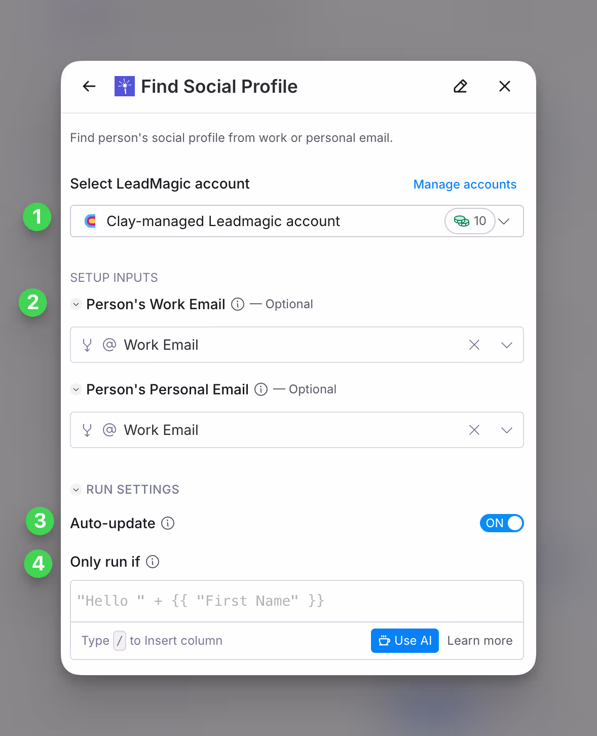 First, you can use either the Clay-managed LeadMagic account or your own API key.