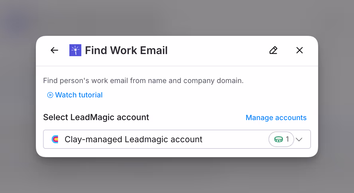 By default, LeadMagic enrichments will use the Clay-managed LeadMagic account. This means that any new enrichment will charge the designated credit amount. Simply pull up any LeadMagic enrichment within Clay to use the Clay-managed LeadMagic account.