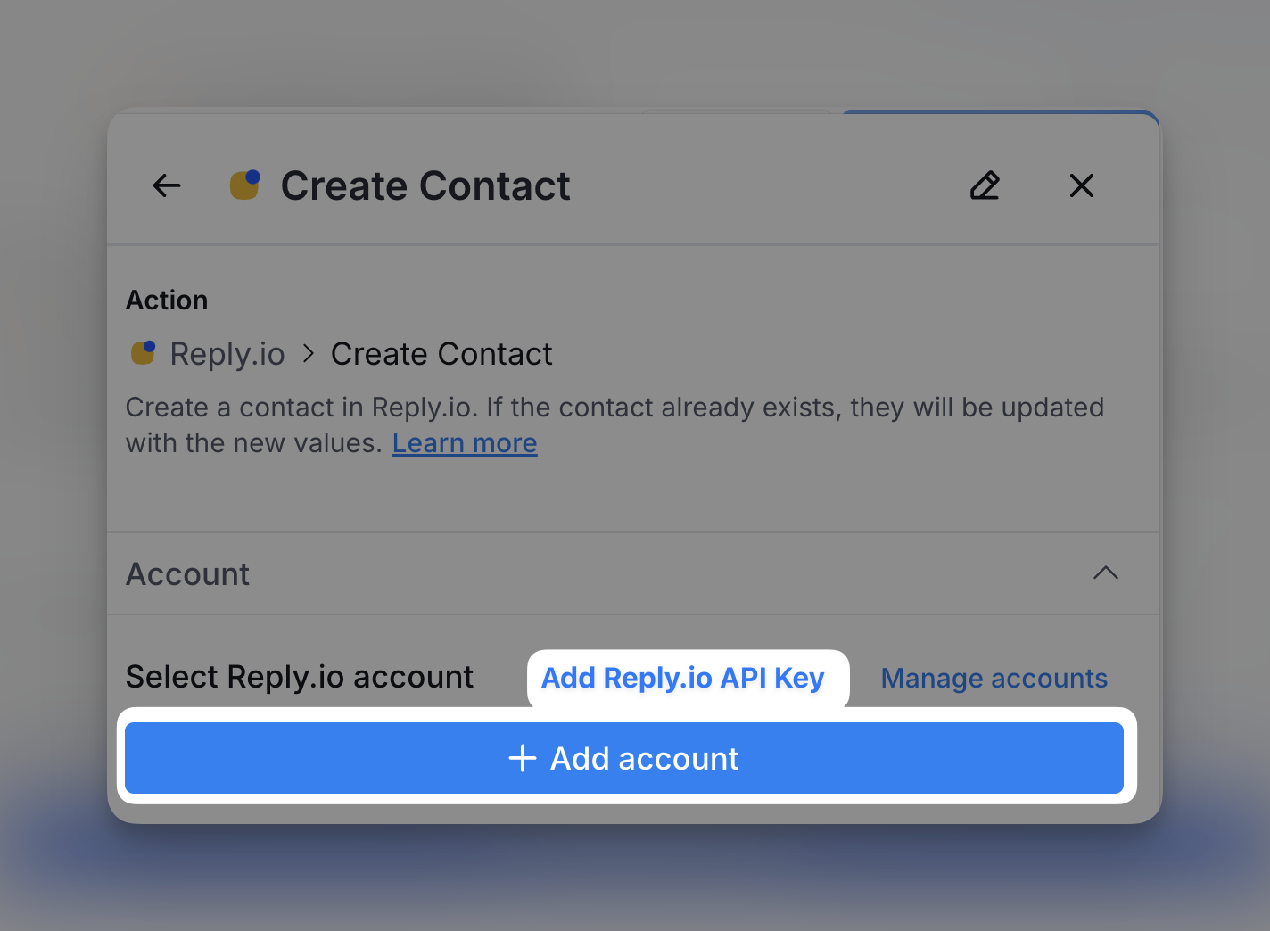 Use this action to create a new contact in Reply.io. If the contact already exists, the information will be updated with the latest values provided.